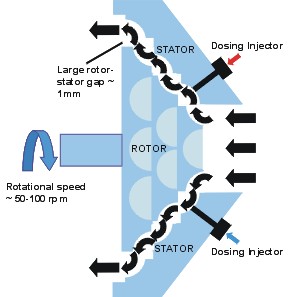 | FDM rotor and stator | FDM mixer in Low Shear Mode shown with dosing injectors |