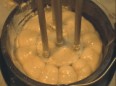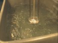 Distromix DB100F High Flow unit with open shaft in 200 litres of water. 10kg of flour is added to demonstrate rapid powder dispersion. Note how the High Flow impeller increases agitation compared with the example above, but also increases aeration.